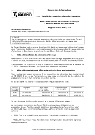 Le présent rapport a pour objet de soumettre à la commission permanente du Conseil Général différents dossiers de demandes d'aides départementales en faveur des exploitations agricoles.