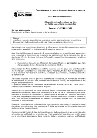 Le présent rapport a pour objet de soumettre à votre approbation des propositions d'intervention du Département au titre de l'aide aux actions mémorielles.