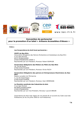 Convention de partenariat pour la promotion d'un label ''Artisans accessibles d'Alsace''