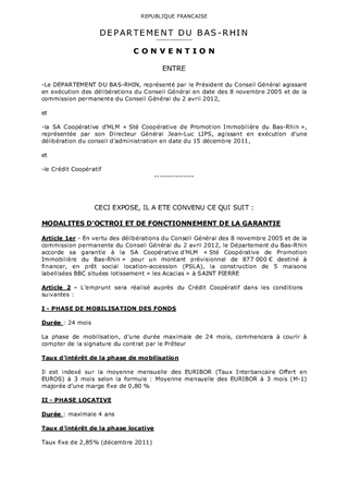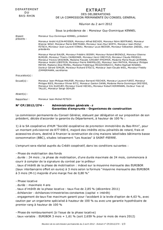 Le présent rapport concerne deux demandes de garantie présentées par : 1) la SA Coopérative d'HLM « Sté Coopérative de Promotion Immobilière du Bas-Rhin » dans le cadre de la mise en place du PSLA (prêt social location-accession) 2) la SA d'HLM SOMCO dans le cadre d'une convention d'objectifs approuvée par la commission permanente du Conseil Général pour la mise en oeuvre de la politique départementale de l'habitat.