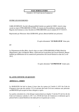 Prise à bail transitoire de locaux pour le Service de protection de l'enfance à MOLSHEIM
