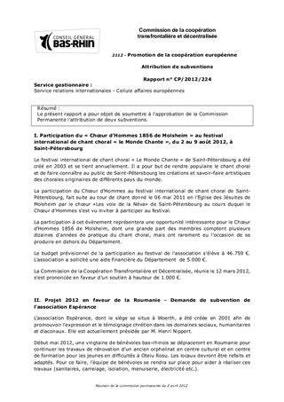 Le présent rapport a pour objet de soumettre à l'approbation de la Commission Permanente l'attribution de deux subventions.