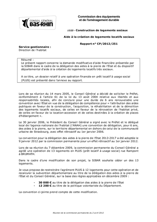 Le présent rapport concerne la demande modificative d'aide financière présentée par la SIBAR dans le cadre de la délégation des aides à la pierre de l'Etat et du dispositif départemental d'aide à la création de logements locatifs très sociaux. A ce titre, un dossier relatif à une opération financée en prêt locatif à usage social (PLUS) est présenté dans l'annexe au rapport.