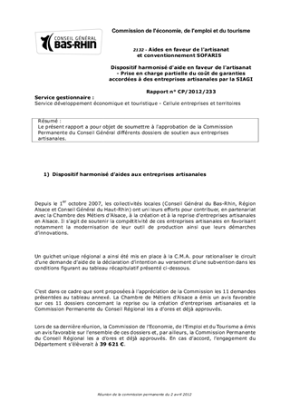 Le présent rapport a pour objet de soumettre à l'approbation de la Commission Permanente du Conseil Général différents dossiers de soutien aux entreprises artisanales.