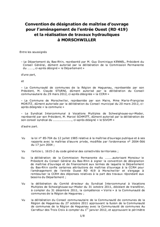 Convention de désignation de maîtrise d'ouvrage pour l'aménagement de la RD 419 dans la traversée de MORSCHWILLER