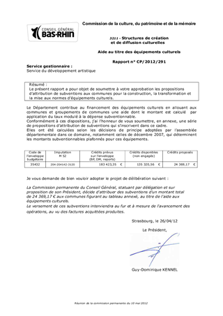 Le présent rapport a pour objet de soumettre à votre approbation les propositions d'attribution de subventions aux communes pour la construction, la transformation et la mise aux normes d'équipements culturels.