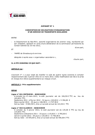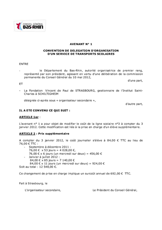 Avenants aux conventions de délégation pour l'organisation de circuits de transports d'élèves et étudiants handicapés