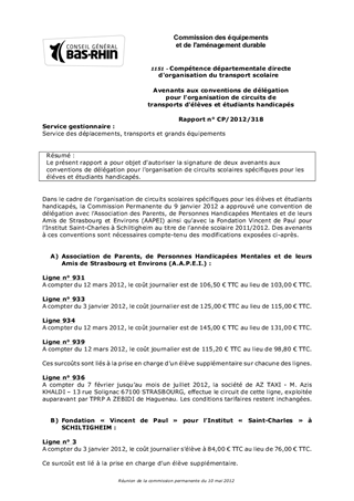Le présent rapport a pour objet d'autoriser la signature de deux avenants aux conventions de délégation pour l'organisation de circuits scolaires spécifiques pour les éléves et étudiants handicapés.