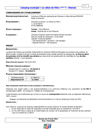 Le présent rapport a pour objet de soumettre à l'approbation de la Commission Permanente du Conseil Général la proposition d'une aide départementale en faveur de l'hébergement touristique de plein air.