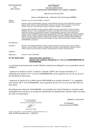 Cession des maisons éclusières n° 7 et 11 à HANGENBIETEN et STRASBOURG
