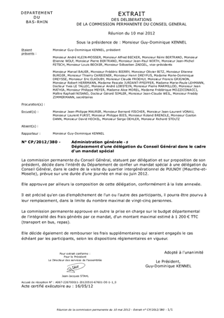 Déplacement d'une délégation du Conseil Général dans le cadre d'un mandat spécial