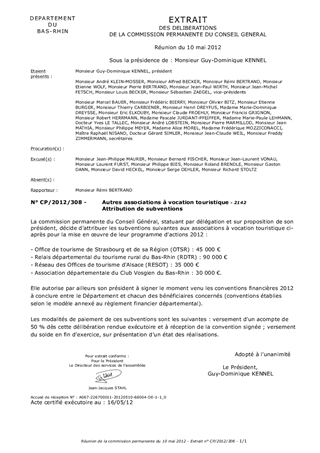 Le présent rapport a pour objet de soumettre à l'approbation de la Commission Permanente du Conseil Général l'attribution de subventions à diverses associations à vocation touristique pour leurs programmmes d'actions 2012.
