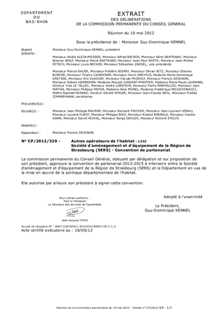 Société d'aménagement et d'équipement de la Région de Strasbourg (SERS) - Convention de partenariat