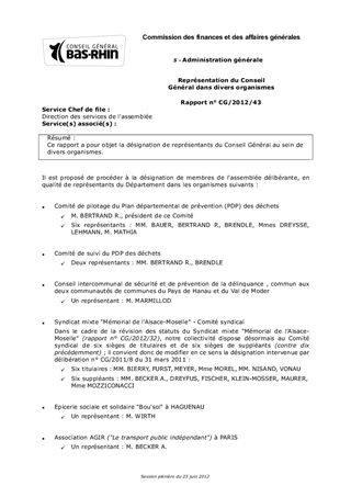 Ce rapport a pour objet la désignation de représentants du Conseil Général au sein de divers organismes.