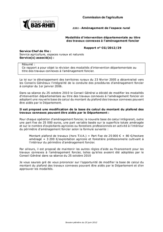 Ce rapport a pour objet la révision des modalités d'intervention départementale au titre des travaux connexes à l'aménagement foncier.