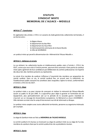 Révision des statuts du Syndicat mixte du Mémorial de l'Alsace-Moselle