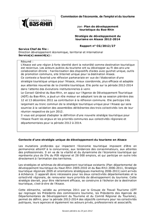 Stratégie de développement du tourisme en Alsace 2012-2014