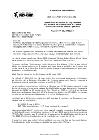 L'EPIDE a pour objectif d'aider les jeunes volontaires, à trouver leur place dans la société, et de favoriser leur entrée dans la vie active grâce à une formation intégrant les aspects comportementaux, scolaires et préprofessionnels. Le présent rapport vise à soumettre à l'examen de l'assemblée plénière du Conseil Général notre participation financière aux travaux de réhabilitation du bâtiment.