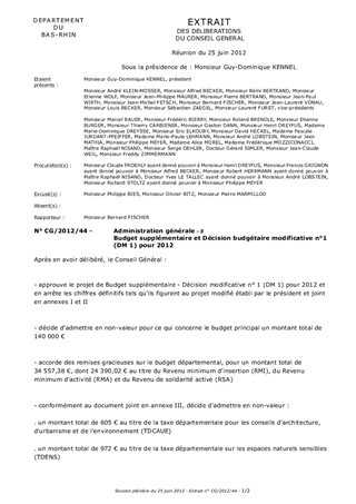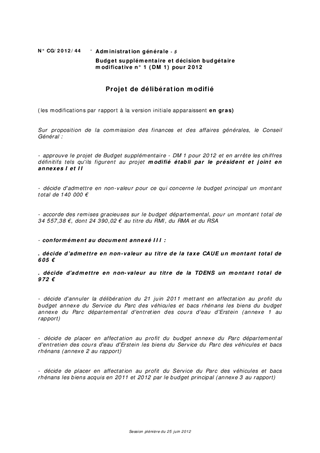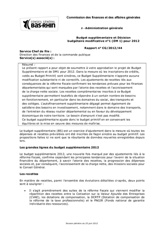 Budget supplémentaire et Décision budgétaire modificative n°1 (DM 1) pour 2012