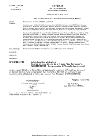 Reprise en régie directe de la Maison ''Les Terrasses'' à WANGENBOURG - Compensation à l'Amicale du personnel