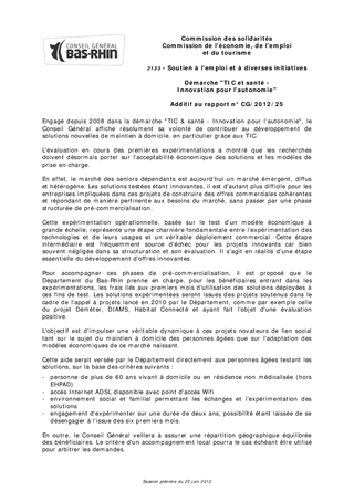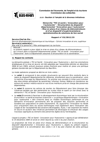 Démarche ''TIC et santé / Innovation pour l'autonomie'' - Structuration du dispositif départemental ''Innovation pour l'autonomie'' - Mise en place d'un réseau de démonstrateurs et d'un dispositif d'expérimentations opérationnelles de solutions de lien social
