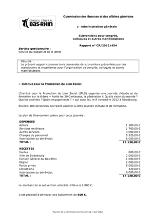 Le présent rapport concerne trois demandes de subventions présentées par des associations et organismes pour l'organisation de congrès, colloques et autres manifestations