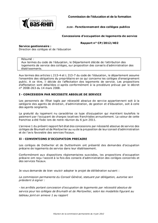Aux termes du code de l'éducation, le Département décide de l'attribution des logements de service des collèges, sur proposition des conseils d'administration des établissements.