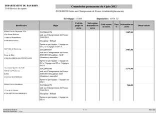 Aide aux clubs engagés en championnat de France - Résultats et déplacements