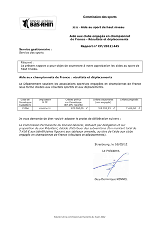 Le présent rapport a pour objet de soumettre à votre approbation les aides au sport de haut niveau.
