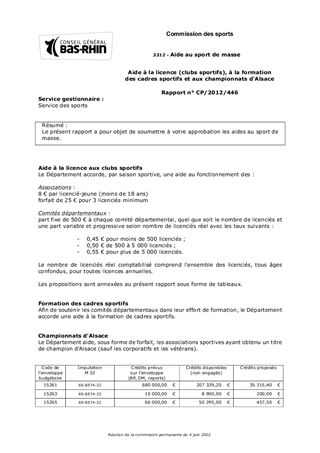 Aide à la licence (clubs sportifs), à la formation des cadres sportifs et aux championnats d'Alsace