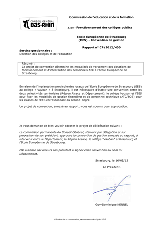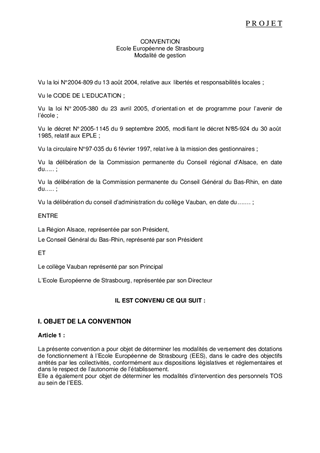 Ecole Européenne de Strasbourg (EES) - Convention de gestion