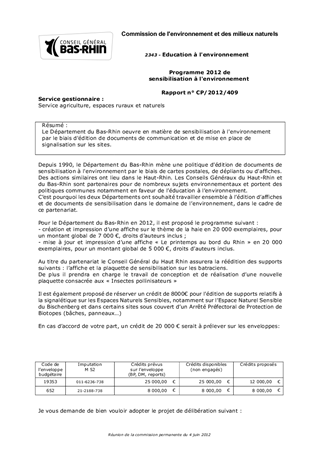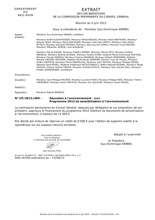 Le Département du Bas-Rhin oeuvre en matière de sensibilisation à l'environnement par le biais d'édition de documents de communication et de mise en place de signalisation sur les sites.