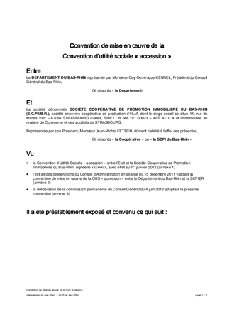 Société coopérative de promotion immobilière du Bas-Rhin - Mise en oeuvre de la convention d'utilité sociale ''accession''