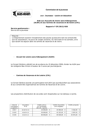 Aide aux Accueils de loisirs sans hébergement (ALSH) et aux Centres de vacances et de loisirs (CVL)