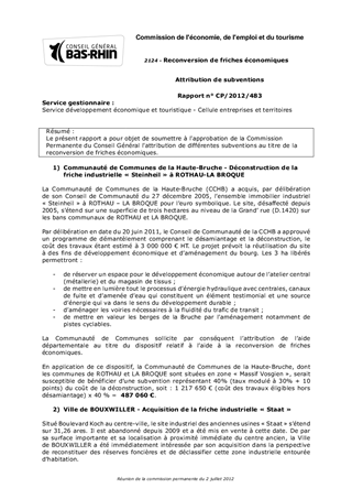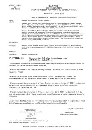 Le présent rapport a pour objet de soumettre à l'approbation de la Commission Permanente du Conseil Général l'attribution de différentes subventions au titre de la reconversion de friches économiques.