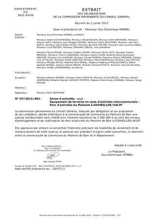Le présent rapport a pour objet de soumettre à l'approbation de la Commission Permanente du Conseil Général l'attribution d'une avance remboursable sans intérêt à la Communauté de Communes du Piémont de Barr au titre du coût des travaux d'aménagement et de viabilisation du Parc d'Activités du Piémont à GOXWILLER/VALFF.