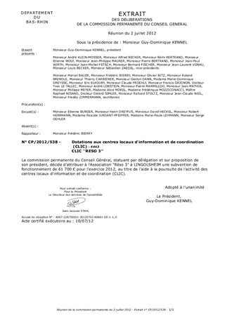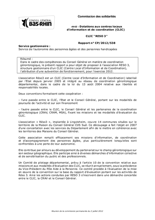 Dans le cadre des compétences du Conseil Général en matière de coordination gérontologique, le présent rapport a pour objet de proposer à l'association RESO 3, structure gestionnaire d'un CLIC (Centre Local d'Information et de Coordination), l'attribution d'une subvention de fonctionnement, pour l'exercice 2012.
