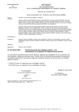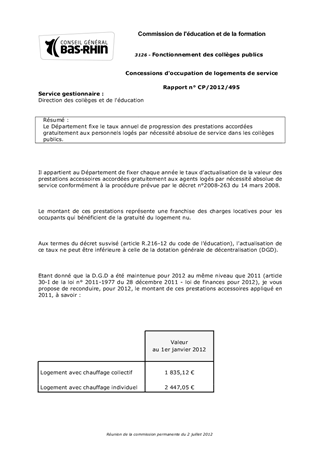 Le Département fixe le taux annuel de progression des prestations accordées gratuitement aux personnels logés par nécessité absolue de service dans les collèges publics.