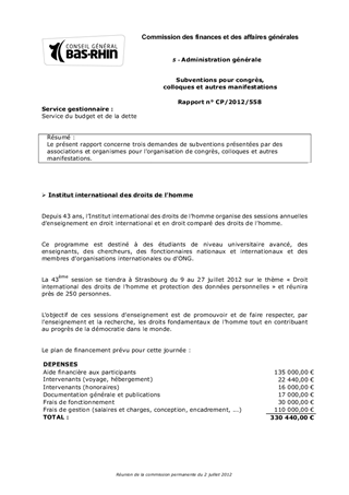 Le présent rapport concerne trois demandes de subventions présentées par des associations et organismes pour l'organisation de congrès, colloques et autres manifestations.
