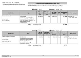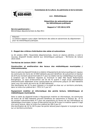 Le présent rapport a pour objet l'attribution des aides et subventions du département pour les bibliothèques publiques.