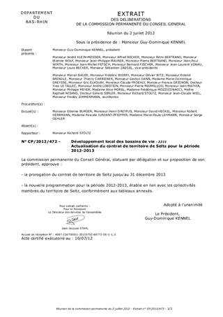 Actualisation du contrat de territoire de Seltz pour la période 2012-2013