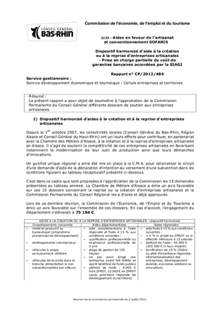 Le présent rapport a pour objet de soumettre à l'approbation de la Commission Permanente du Conseil Général différents dossiers de soutien aux entreprises artisanales.
