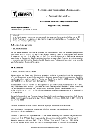 Le présent rapport concerne une demande de garantie d'emprunt sollicitée par la SA d'HLM Axentia et une demande de mainlevée partielle sollicitée par l'association du Foyer des Missions africaines.