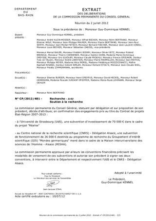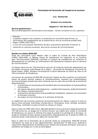 Le présent rapport vise à soutenir la recherche sur le territoire bas-rhinois, en confirmation des engagements de la collectivité au titre du contrat de projets Etat-Région (CPER) 2007-2013. Il vous est ainsi proposé l'attribution de deux subventions destinées à financer la recherche en sciences humaines, ainsi qu'en sciences de l'environnement.