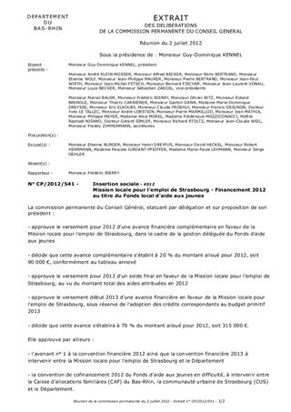 Mission locale pour l'emploi de Strasbourg - Financement 2012 au titre du Fonds local d'aide aux jeunes