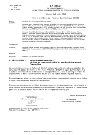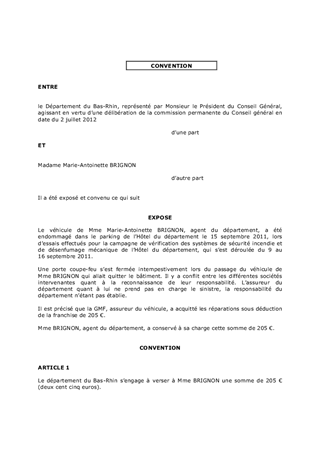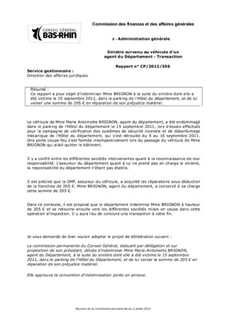 Sinistre survenu au véhicule d'un agent du Département - Transaction