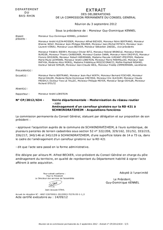 Aménagement d'un carrefour giratoire sur la RD 421 à SCHWINDRATZHEIM - Acquisitions foncières