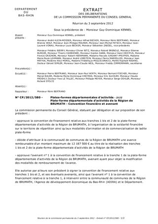 Plate-forme départementale d'activités de la Région de BRUMATH - Convention financière et avenant