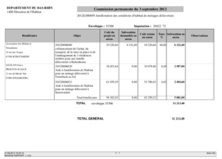 Le présent rapport concerne trois demandes de subvention départementale pour l'amélioration des conditions d'habitat de ménages défavorisés à KALTENHOUSE, TRIEMBACH-AU-VAL et SARREWERDEN, l'une émanant de l'association 'AVA habitat et nomadisme' et les deux autres de Procvis Alsace-SACICAP Alsace.