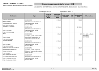 Répartition de l'enveloppe de fonctionnement en faveur des personnes handicapées